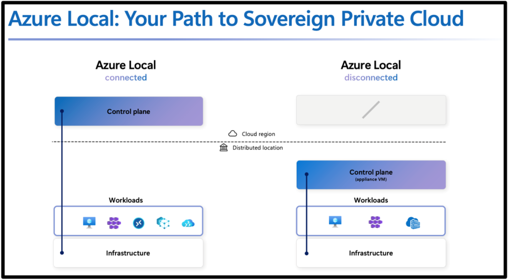 Es gibt alternative Souveränitätslösungen, aber das Hauptunterscheidungsmerkmal von Microsoft ist sein einheitlicher Souveränitäts-Stack: Azure Local + Microsoft 365 Local + Foundry Local unter einer einzigen Souveränitätsstellung, einschließlich vollständiger Offline-Fähigkeit.