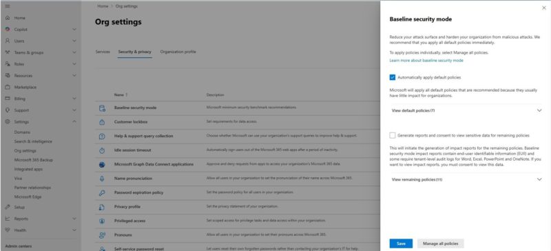 Microsoft Baseline Security Mode (BSM) is a security feature that enforces essential protection settings across Microsoft cloud services by default. It was developed from Microsoft’s internal security initiatives and best practices to serve as a built-in security baseline for organizations. In practical terms, BSM introduces a standardized set of secure configurations for your Microsoft 365 environment. By opting in, an organization’s Microsoft 365 and Microsoft Entra (cloud identity) services automatically disable outdated, less secure configurations and enable modern, recommended security settings without requiring manual configuration. This ensures every tenant meets a minimum security standard, closing gaps left by legacy settings. Importantly, BSM is an evolving standard – the initial release focuses on Microsoft 365 and Entra (formerly Azure AD), and future updates will extend its coverage to other platforms like Microsoft Purview, Intune, Dynamics 365, and Azure.