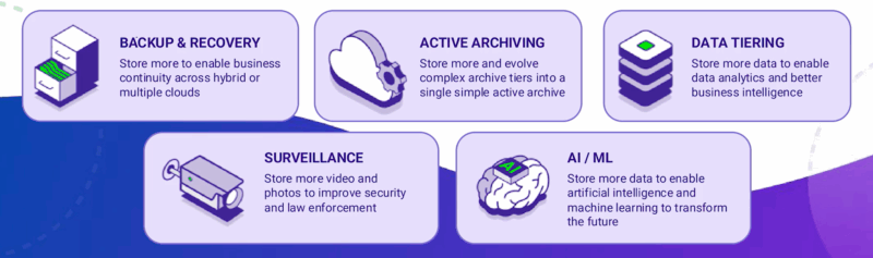 - S3 compatible, integrates easily with Veeam, Commvault, Rubrik, Acronis, and many more.
